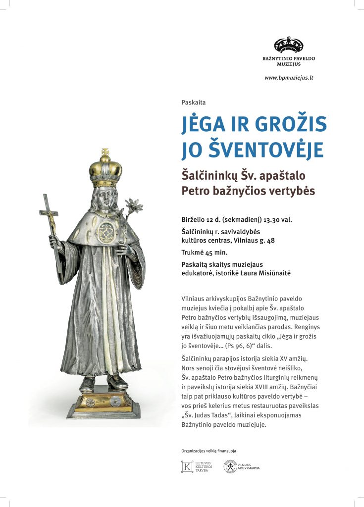 Birželio 12 d., sekmadienį, 13.30 val. Vilniaus arkivyskupijos Bažnytinio paveldo muziejus kviečia į pokalbį apie Šalčininkų Šv. apaštalo Petro bažnyčios vertybių išsaugojimą, muziejaus veiklą ir šiuo metu veikiančias parodas. Renginys yra išvažiuojamųjų paskaitų ciklo „Jėga ir grožis jo šventovėje… (Ps 96, 6)“ dalis.