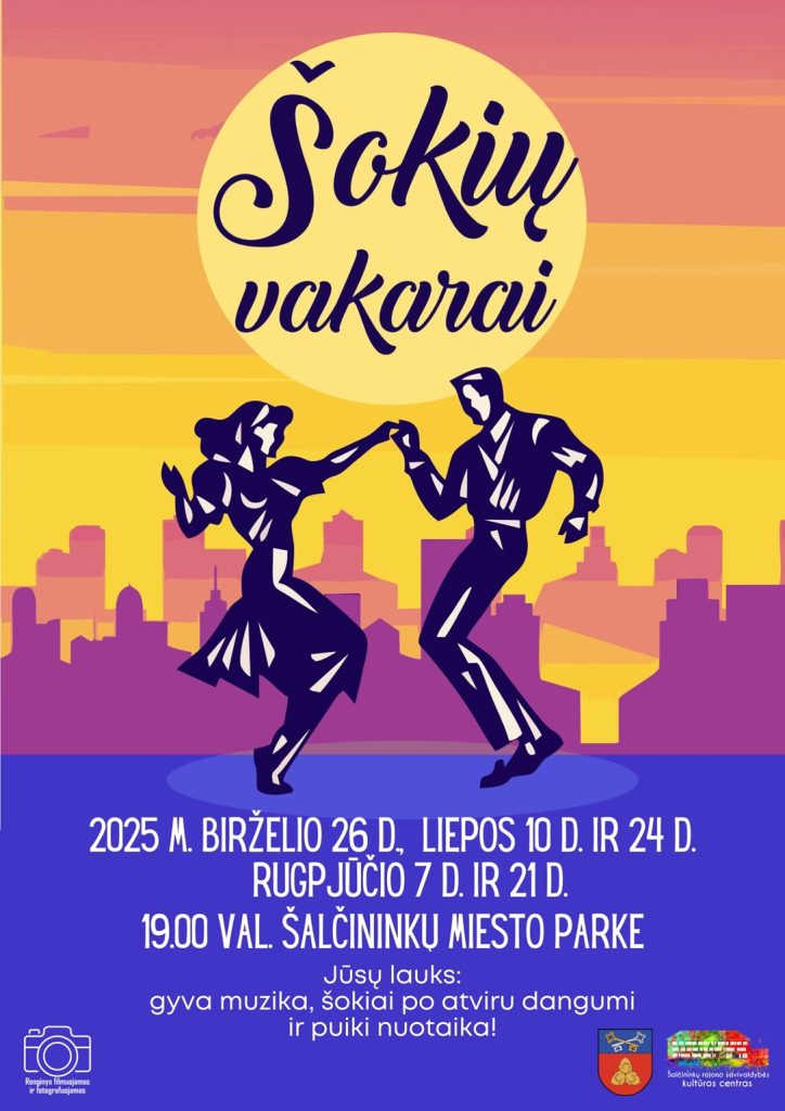 Šalčininkų kultūros centras kviečia į Šokių vakarus po atviru dangumi Šalčininkų miesto parke. Šokiai vyks visą vasarą: 2025 m. birželio 26 d., liepos 10, 24 d., rugpjūčio 7, 21 d. Renginio laikas 19.00 val. Programoje: gyva muzika, šokiai ir puiki nuotaika. Renginiai nemokami!
