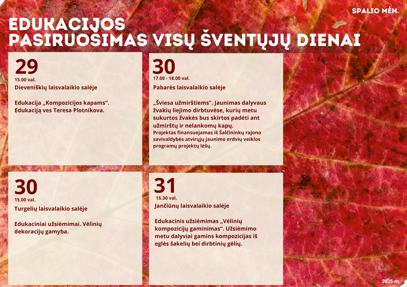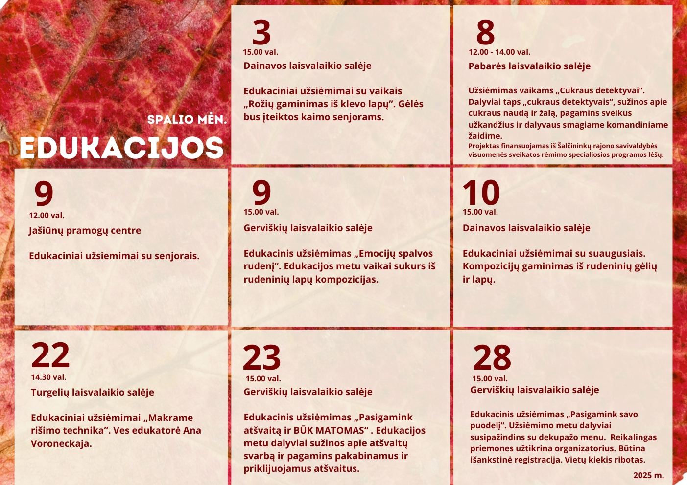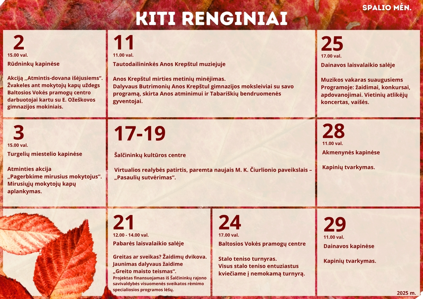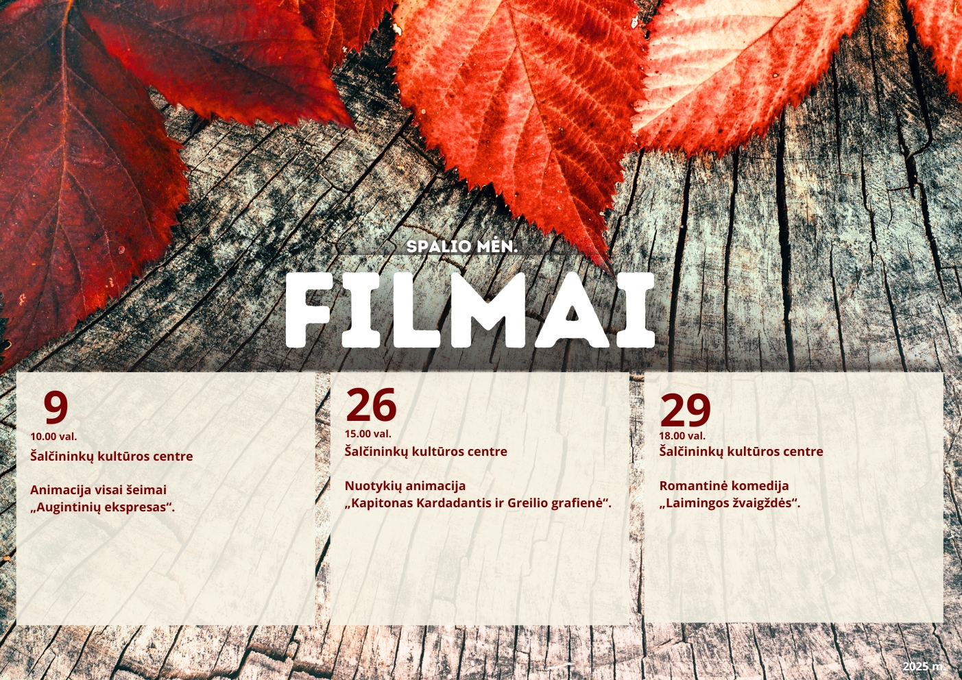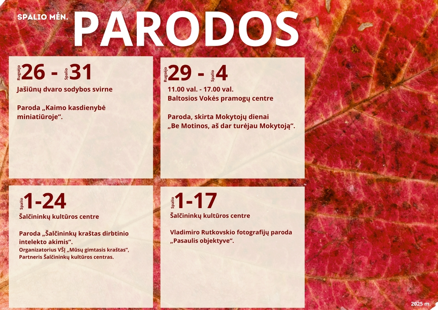 2025 m. spalio mėn. renginiai Post published:2025-10-03 You Might Also Like 2023 m. kovo mėnesio renginiai 2023-03-02 Filmas „Petsi iš Argo” 2023-04-11 Meninės akcijos-konkurso „Lietuvių liaudies ornamentų žydėjimas“ dalyvių darbų paroda 2022-03-09