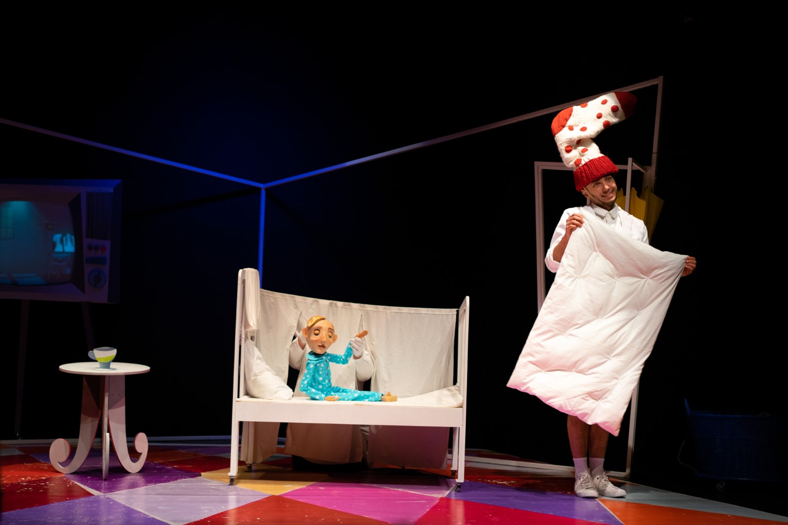 Spektaklio scenarijus sukurtas kaip gyvos televizijos laida, kurią veda pagrindinis veikėjas – ponas Televizoriukas, autorinės programos „Linksmi namai“ vedėjas. Scenoje – Kovalskių ir Malinovskių šeimos, kurios linksmai rungiasi tarpusavyje, pasitelkdamos Justynos Bednarek knygos „Nepaprasti dešimties kojinių nuotykiai“ herojus. Žiūrovai išvys Prezidentę Kojinę, Pelę Mamą, Kojinę Detektyvą, Gydytoją ir Žvaigždę, o viską užbaigs kelionė laiku į vaikystės pasaulį. Dėka scenografo Przemysławo Karowskio vaizduotės spektaklis tapo spalvingas, kupinas humoro, netikėtumų ir artimas šių dienų žiūrovui. Kviečiame tai patirti mūsų teatre!