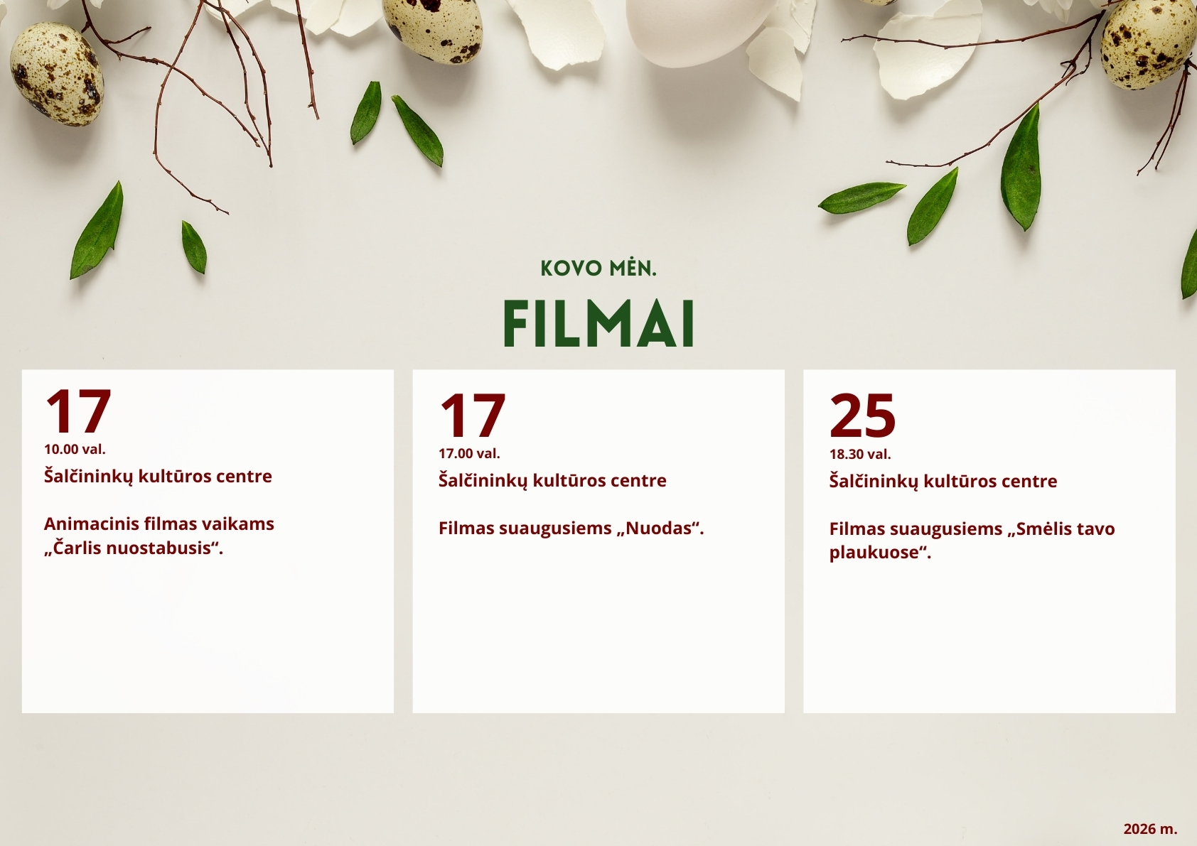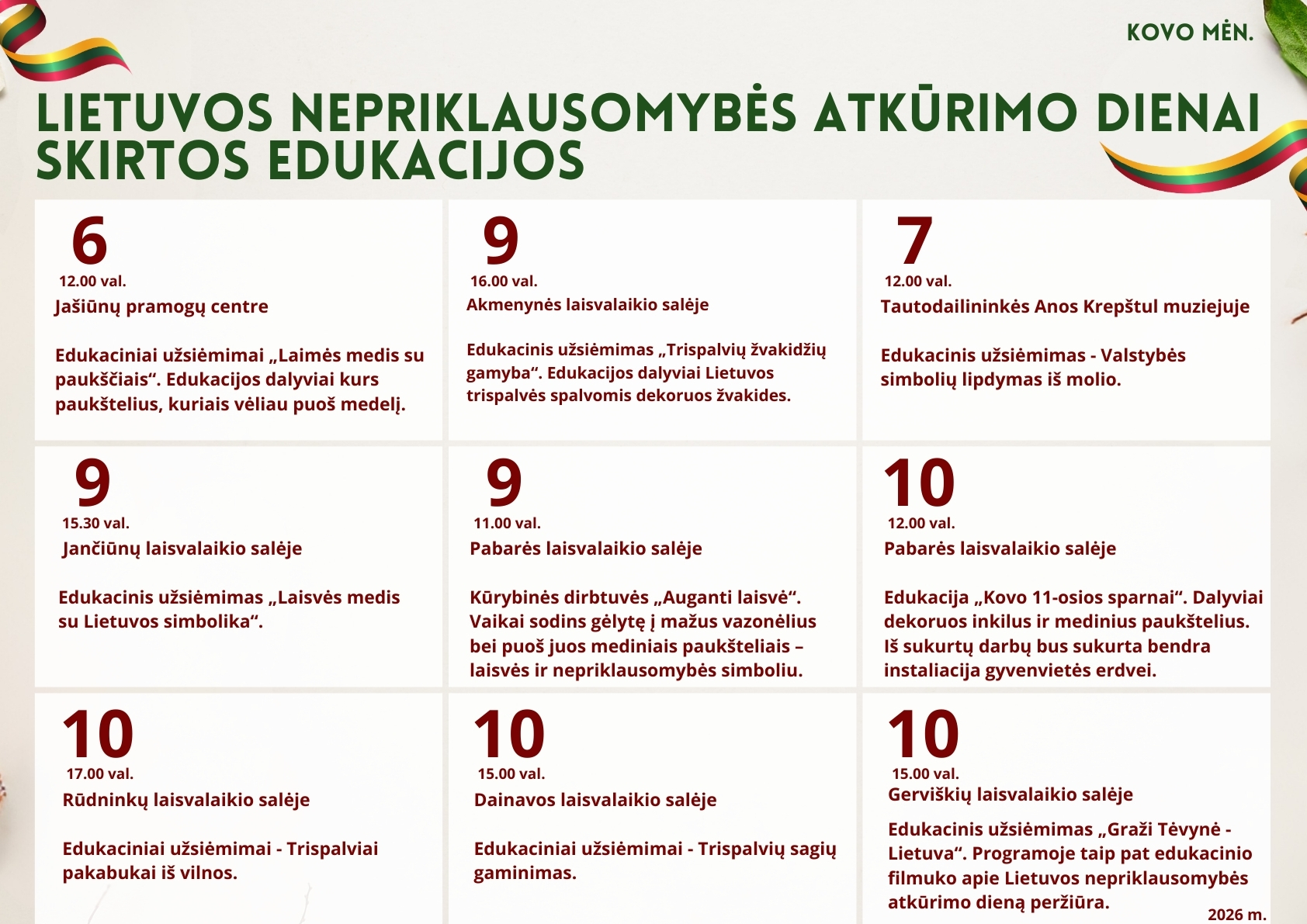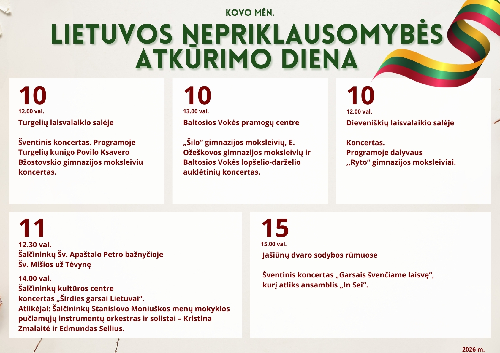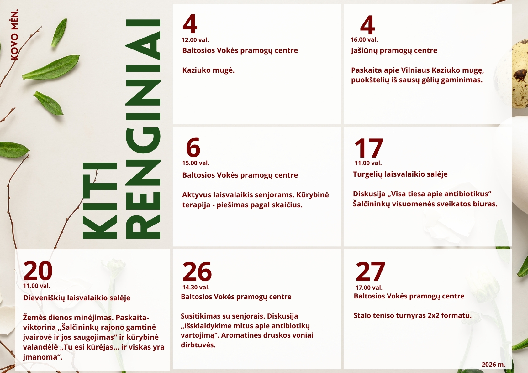 2026 m. kovo mėn. renginiai Post published:2026-03-05 You Might Also Like III dalių pasaką „Stebuklingoji žvaigždė” 2020-12-13 Akcija „Tylos ir solidarumo valanda“: Kūčių išvakarėse – kvietimas Lietuvai sustoti 2020-12-21 2020 m. spalio mėn. renginiai 2020-10-12