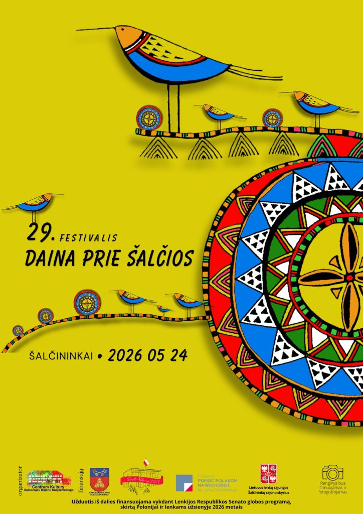 2026 m. gegužės 24 d. kviečiame į XXIX festivalį „Daina prie Šalčios“, kuris vyks Šalčininkų miesto parke.
