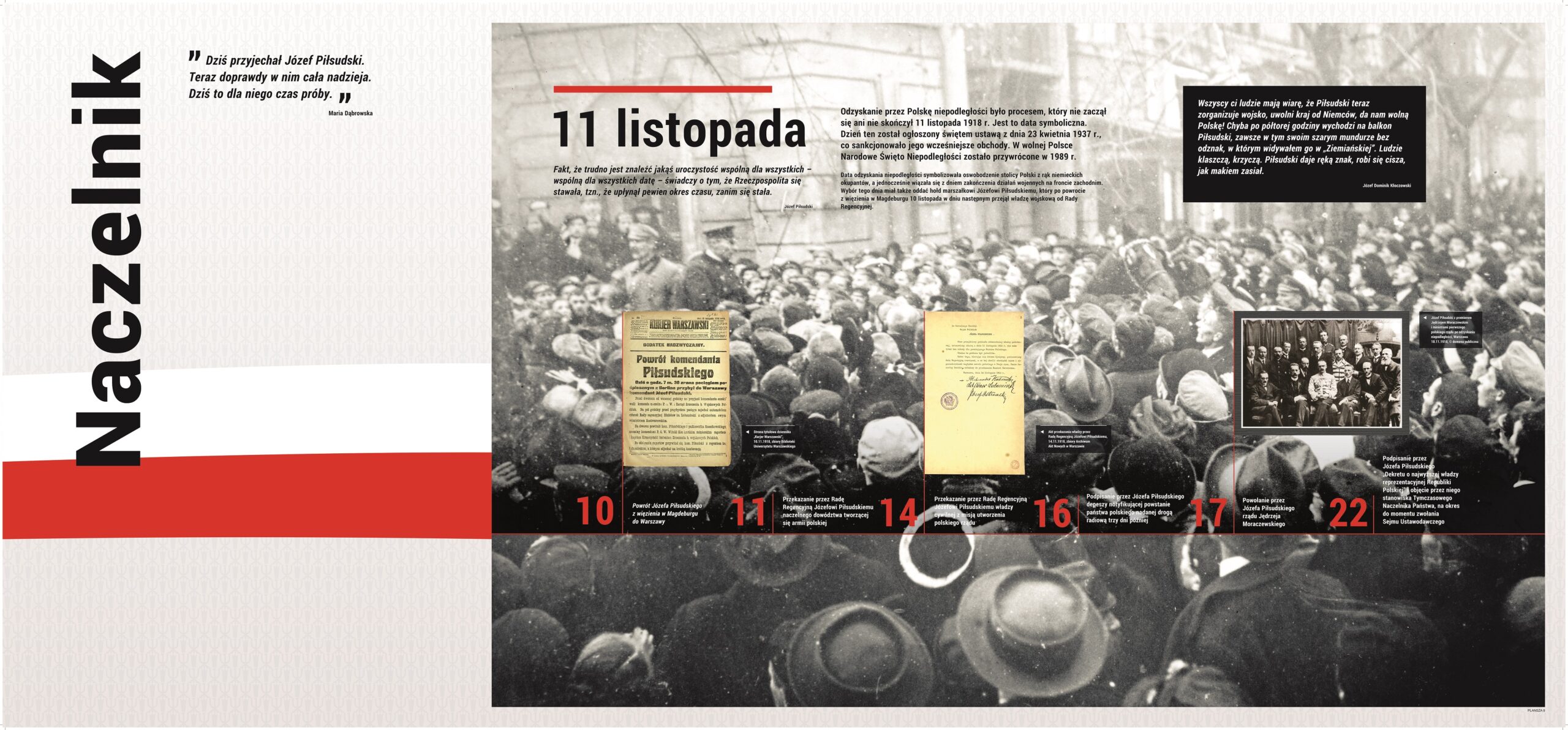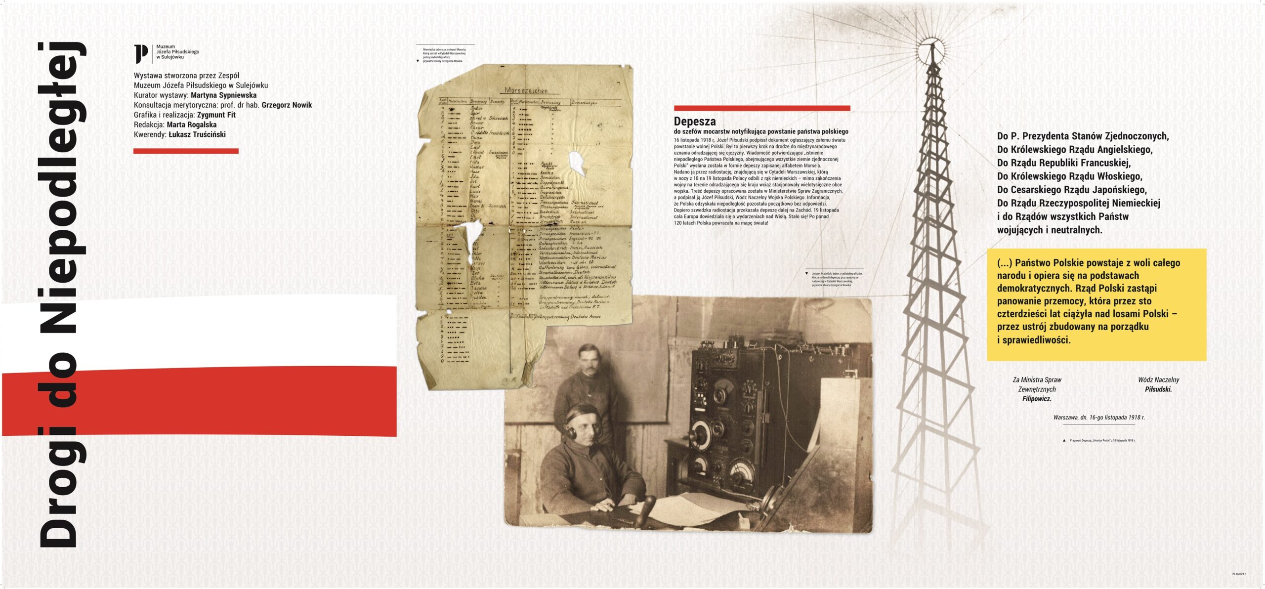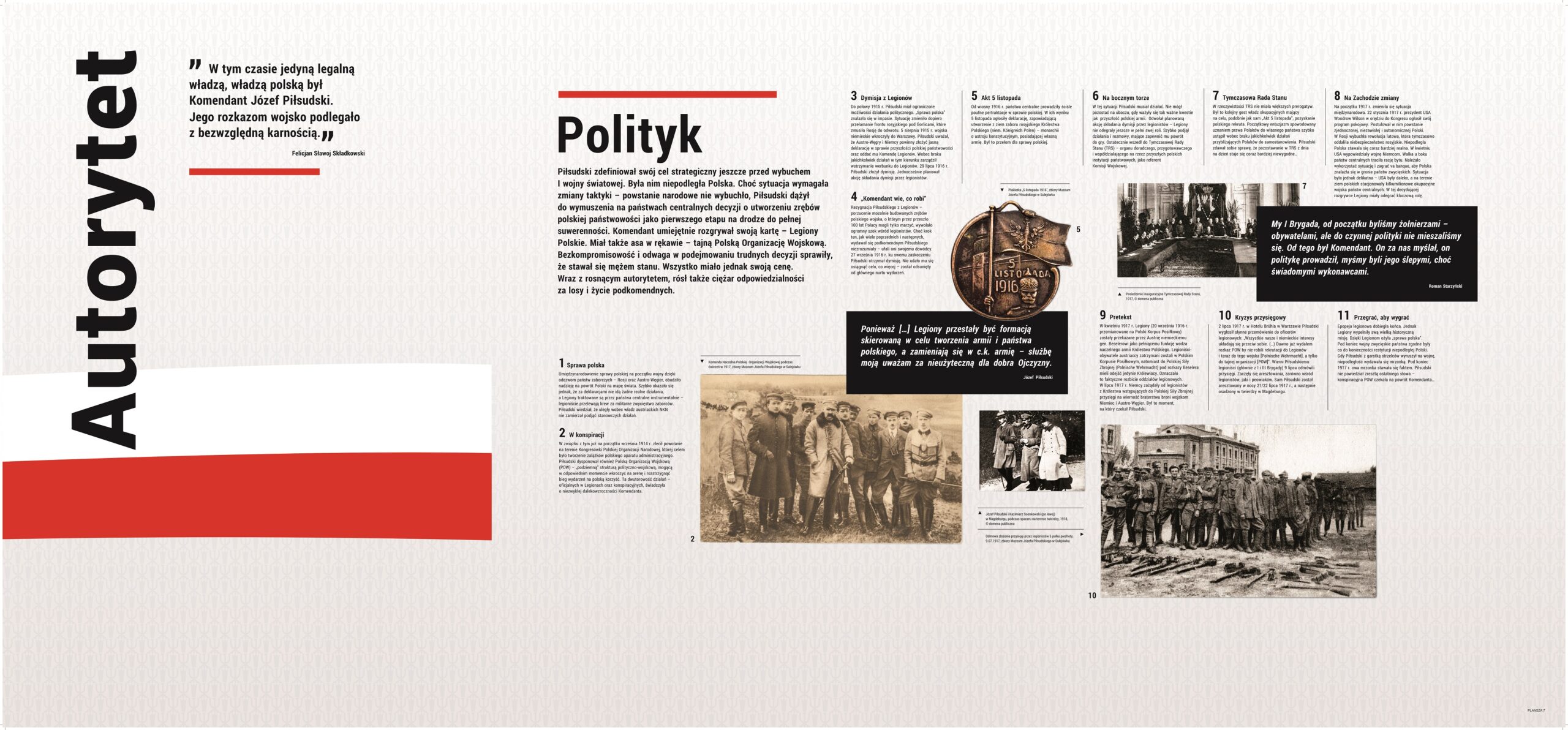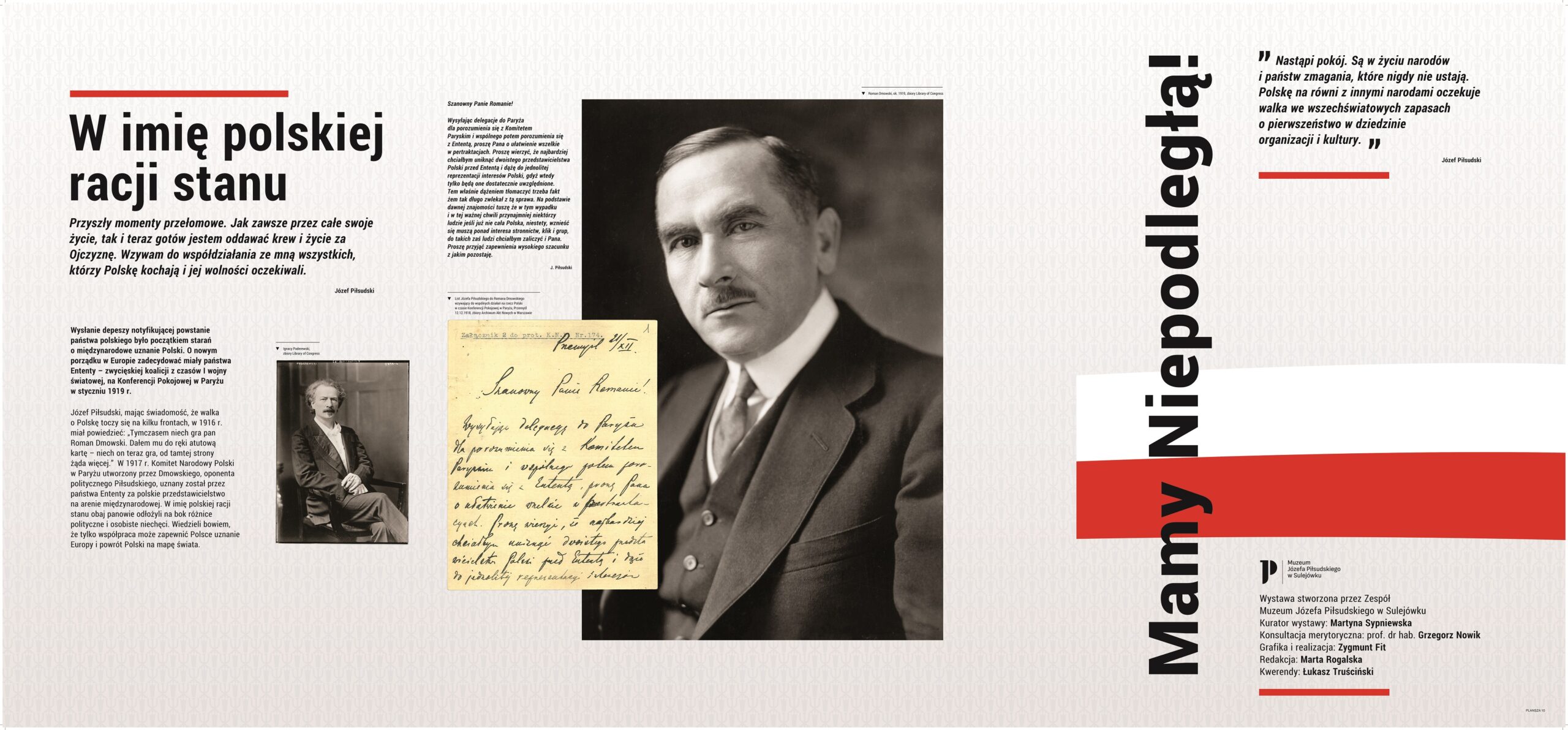 Wystawa stworzona we współpracy Muzeum Józefa Piłsudskiego w Sulejówku z Narodowym Bankiem Polskim z okazji emisji pierwszej monety z wizerunkami ojców niepodległości – prezentującej Józefa Piłsudskiego. Ekspozycja pokazuje Józefa Piłsudskiego jako wizjonera i charyzmatycznego przywódcę, który zjednoczył tysiące ludzi i porwał ich do walki o niepodległość. Poszczególne wątki przedstawiają Komendanta jako dalekowzrocznego polityka, dowódcę wojskowego obdarzonego zaufaniem podkomendnych, obywatela o demokratycznych przekonaniach, człowieka otoczonego legendą, ale przede wszystkim męża stanu, który jako Tymczasowy Naczelnik Państwa wziął na siebie ciężar odpowiedzialności za los odradzającej się ojczyzny. To również opowieść o dylematach, trudnych decyzjach, podejmowaniu ryzyka, niepowodzeniach i sukcesach. Wystawa prowadzi widza od momentu przełomowego – odzyskania niepodległości – drogą, którą wybrał Piłsudski, idąc za marzeniem o wolnej Polsce. Po raz pierwszy została zaprezentowana 11 listopada 2015 roku przed siedzibą Sejmu RP. Eksponowana była w oddziałach NBP w największych polskich miastach.