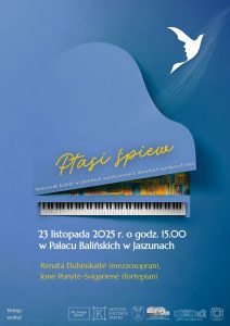 Koncert „Ptasi śpiew. Wizerunki kobiet w pieśniach współczesnych litewskich kompozytorów’’ 23 listopada 2025 r. o godz. 15.00 w Pałacu Balińskich w Jaszunach odbędzie się koncert