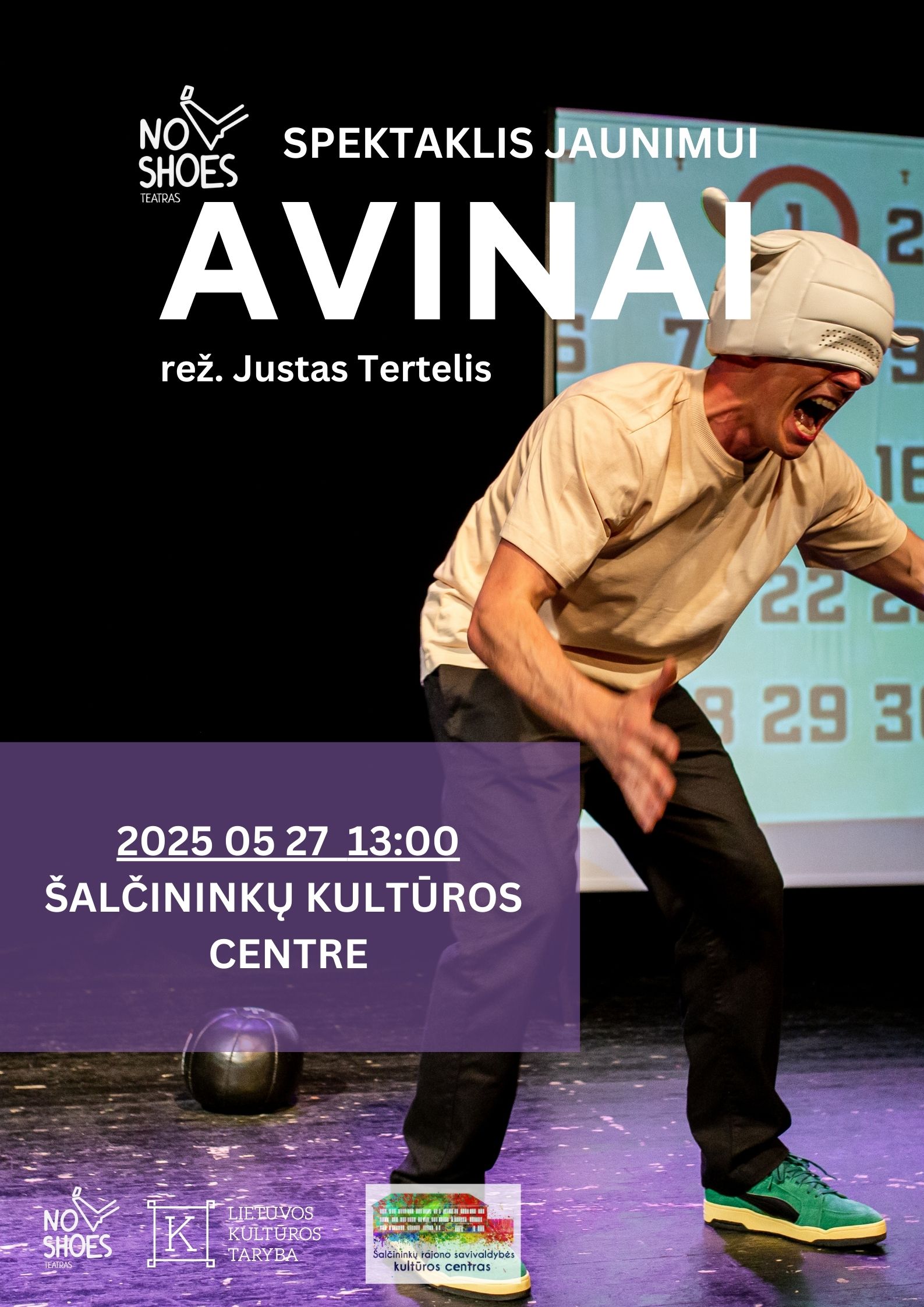 AVINAI 2025.05.27 13.00 Šalčininkų kultūros centras Rekomenduojamas amžius: nuo 14 m. Apdovanotas: Auksiniu scenos kryžiumi Režisierius: Justas Tertelis Aktorius ir dramaturgas: Raimondas Klezys Video anonsas: