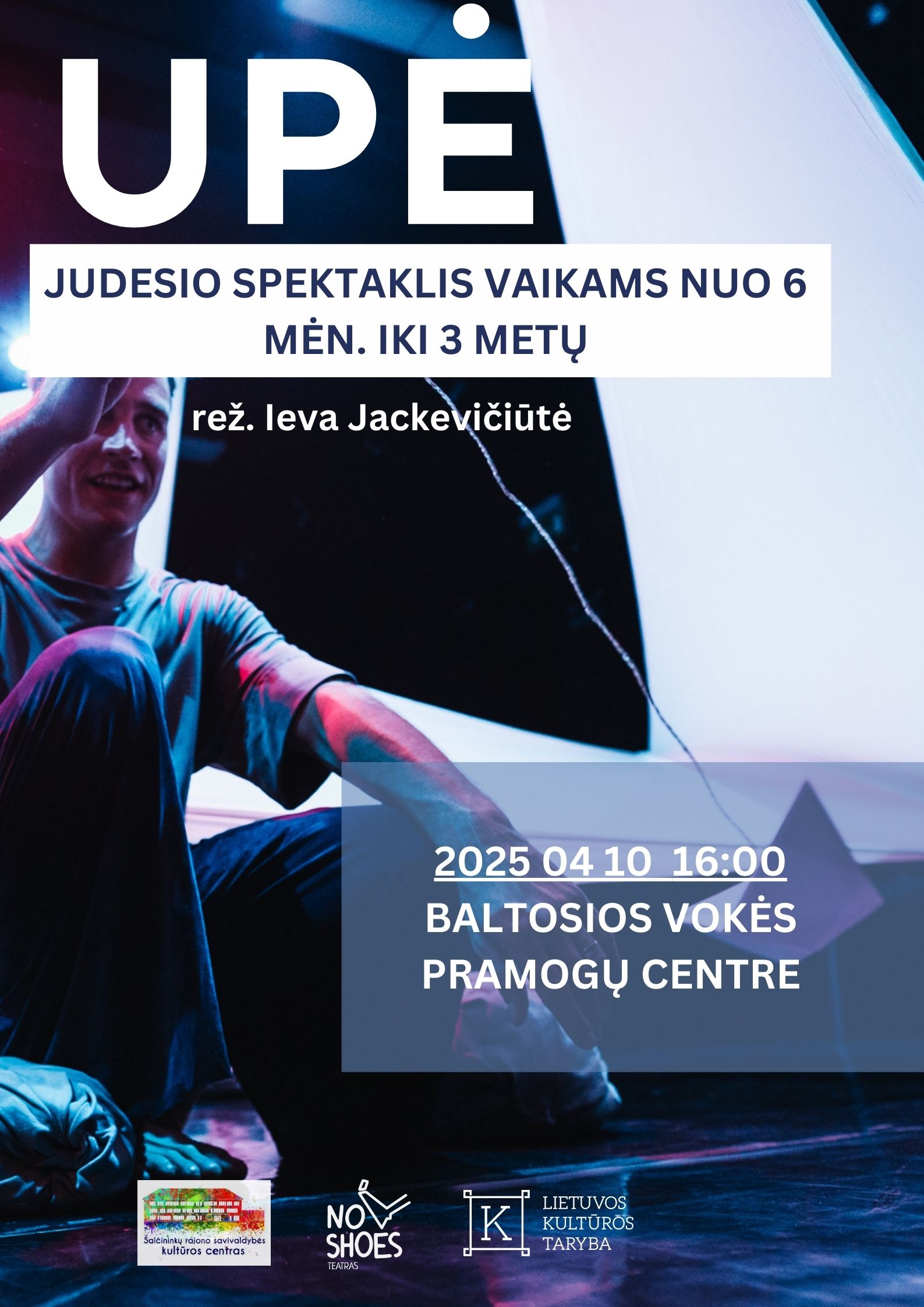 UPĖ 2025.04.10 16.00 Baltosios Vokės pramogų centras Rekomenduojamas amžius – nuo 6 mėnesių iki 3 metų vaikai ir juos lydintys suaugę Režisierė: Ieva Jackevičiūtė Video